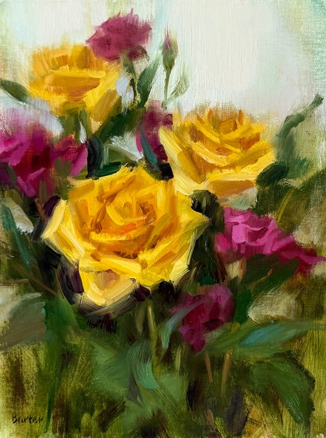 On a radiant spring day at the Albin Polasek Museum and Sculpture Gardens, artist Stacy Barter gave a live painting demonstration amid the blooming grounds. Visitors gathered to watch as she skillfully brought to life a graceful arrangement of magenta and yellow roses, her exceptional technique capturing both the freshness of the garden and the elegance of each petal.