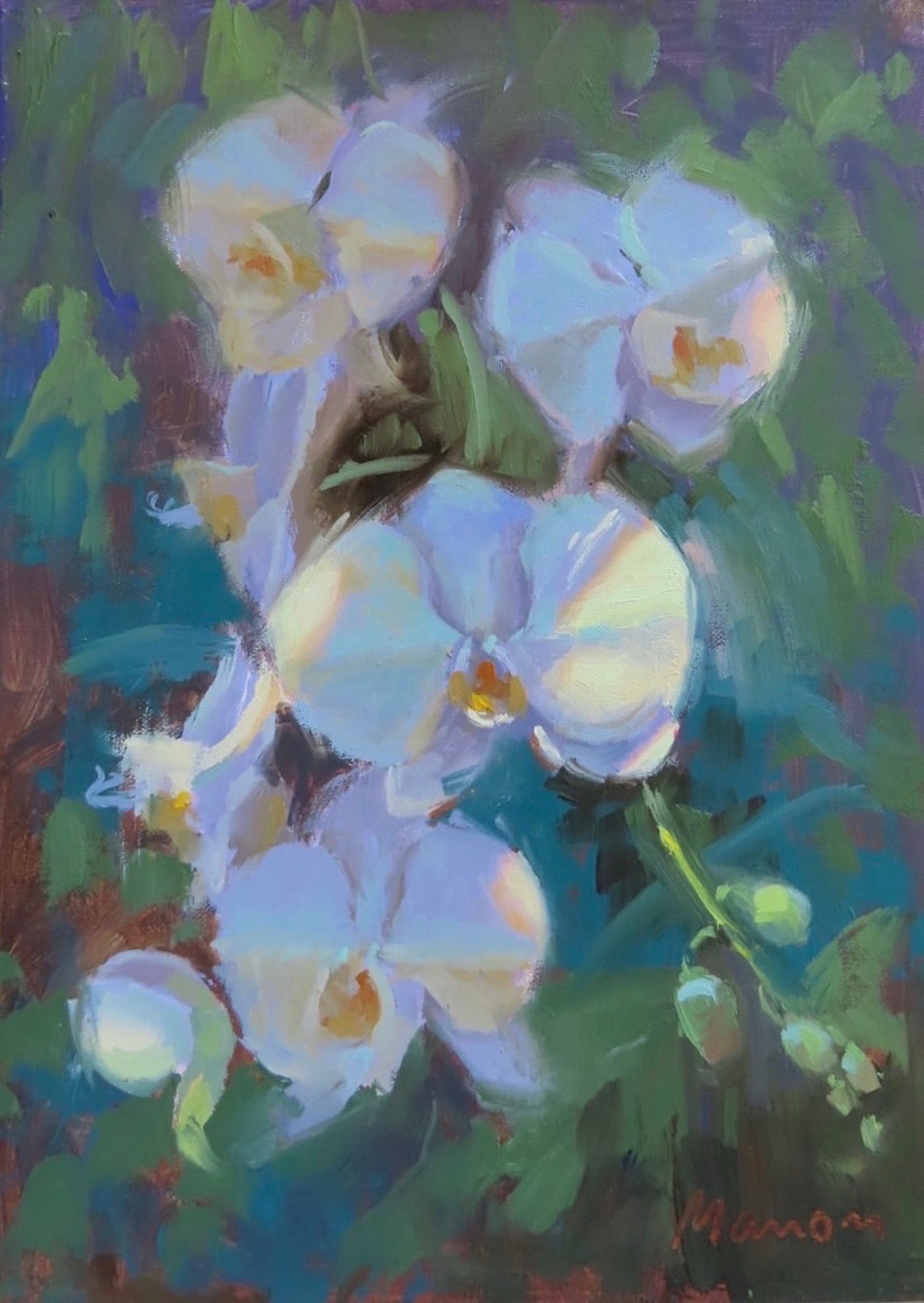 Manon frequently participates and exhibits in juried and invitational shows and plein air events. Her works are in private collections on three continents and have been published in the likes of American Art Collector, Fine Art Connoisseur, and Plein Air Magazine. Her work was recently selected for the cover of Modern Impressionist Magazine, which also included a feature about Manon’s artistic journey.